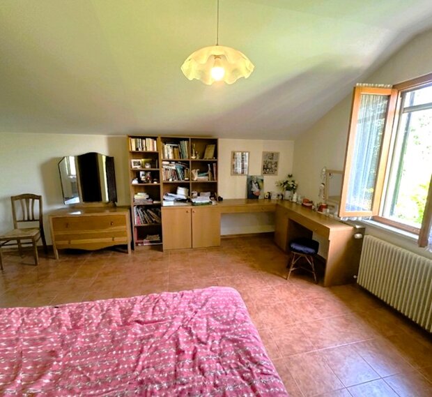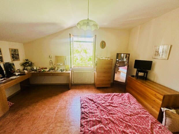 Salendo delle comode scale in legno si accede al primo piano dove troviamo la zona notte che si compone di una spaziosa camera singola, una camera doppia e una camera matrimoniale dalle generose dimensioni. Il piano è servito da un bagno completo finestrato con vasca. Il primo piano è dotato anche di una ampia terrazza e da una veranda, ambiente funzionale come sala hobby o serra.