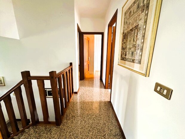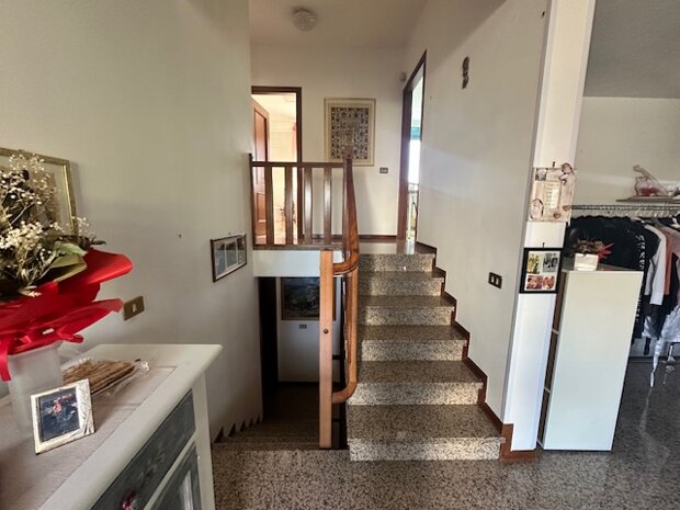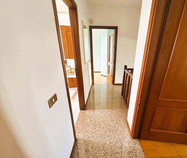 In strada privata, nel cuore tranquillo di Martellago, una casa che unisce indipendenza e comodità. Proponiamo in vendita una villetta a schiera centrale con ingresso indipendente, inserita in un contesto riservato e silenzioso, a pochi passi dai principali servizi del centro. L’ingresso è anticipato da un gradevole portico frontale, ideale per accogliere ospiti o godersi momenti di relax all’aperto. Al piano terra si sviluppa la zona giorno, composta da un luminoso soggiorno con angolo cottura, bagno e pratico ripostiglio, perfetto anche come dispensa. Sul retro, lo scoperto pavimentato privato rappresenta uno spazio funzionale e riservato da vivere nelle belle stagioni. La zona notte, al piano superiore, offre due camere da letto, un secondo bagno finestrato con vasca, un ampio disimpegno, una terrazza abitabile ideale per pranzi all’aperto e un comodo poggiolo. La proprietà è completata da un garage al piano terra oltre a spazi accessori utili per la vita quotidiana. Negli anni l’abitazione è stata oggetto di importanti interventi: tetto rifatto, nuova caldaia a condensazione, infissi in PVC con doppio vetro e porte interne sostituite. Alcuni ambienti offrono ancora margine di personalizzazione, rendendo la casa perfetta per chi desidera adattarla al proprio gusto. Una soluzione ideale per chi cerca tranquillità, indipendenza e la praticità di vivere a pochi minuti da tutti i servizi di Martellago.