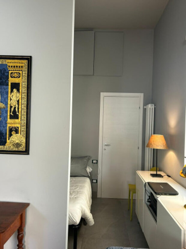 All’esterno, l’appartamento dispone di un terrazzino con pavimentazione in listelli di legno, uno spazio riservato e piacevole, adatto a momenti di relax.