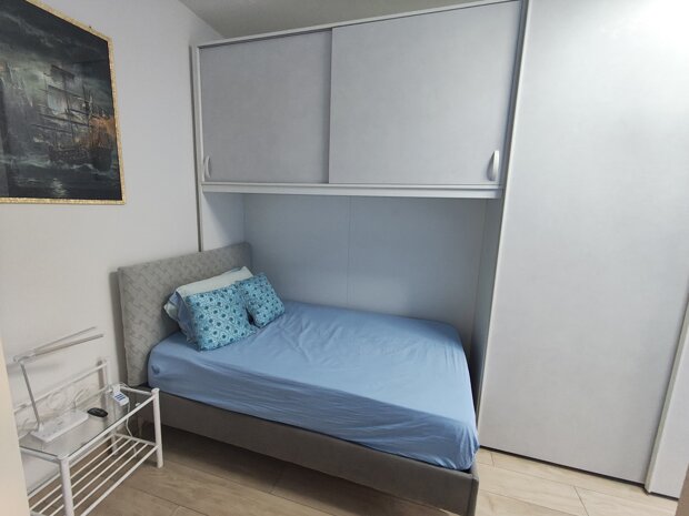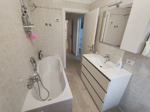 La zona notte, ben separata, offre privacy e tranquillità: tre camere da letto – una matrimoniale e due singole, di cui una con terrazzo – e un secondo bagno finestrato con vasca, comodo e funzionale per la vita quotidiana.