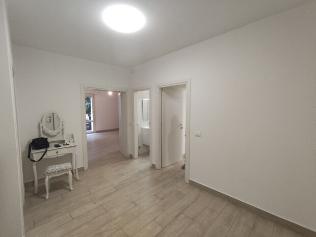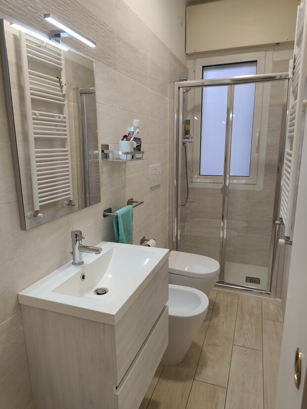 Nel 2024 l’appartamento è stato oggetto di una ristrutturazione completa: rifacimento dei pavimenti, degli impianti elettrico e idraulico, rinnovamento dei due bagni e della cucina, sostituzione degli infissi interni ed esterni e installazione di una nuova caldaia. Una casa moderna, curata e pronta per essere abitata senza alcun intervento aggiuntivo. A completare la proprietà, sono presenti un garage al piano terra e la possibilità di parcheggio all’interno della corte condominiale.